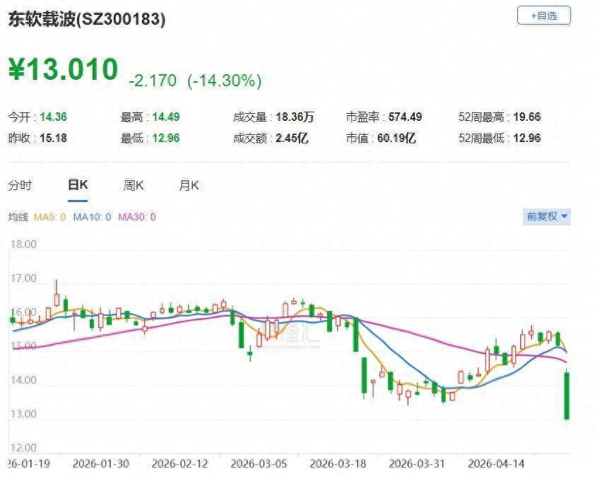 东软载波(300183.SZ)跌14.4%,报13.01元创一年半新低,总市值60.19亿元。东软载波披露一季报,公司2026年一季度实现营业收入1.75亿元,同比下降26.15%;净利润亏损2258.74万元,上年同期净利润394.06万元。报告期内,由于全球经济放缓,下游需求没有明显增加,在买方市场格局下芯片公司价格内卷深圳配资,盈利空间被系统性拉低。公司集成电路板块面临毛利率下降的显著压力。(格隆汇)